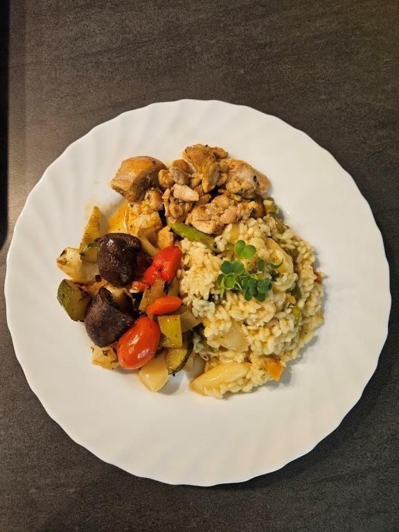 Hauptgang: Paprika - Basilikum Hähnchen mit Spargelrisotto
